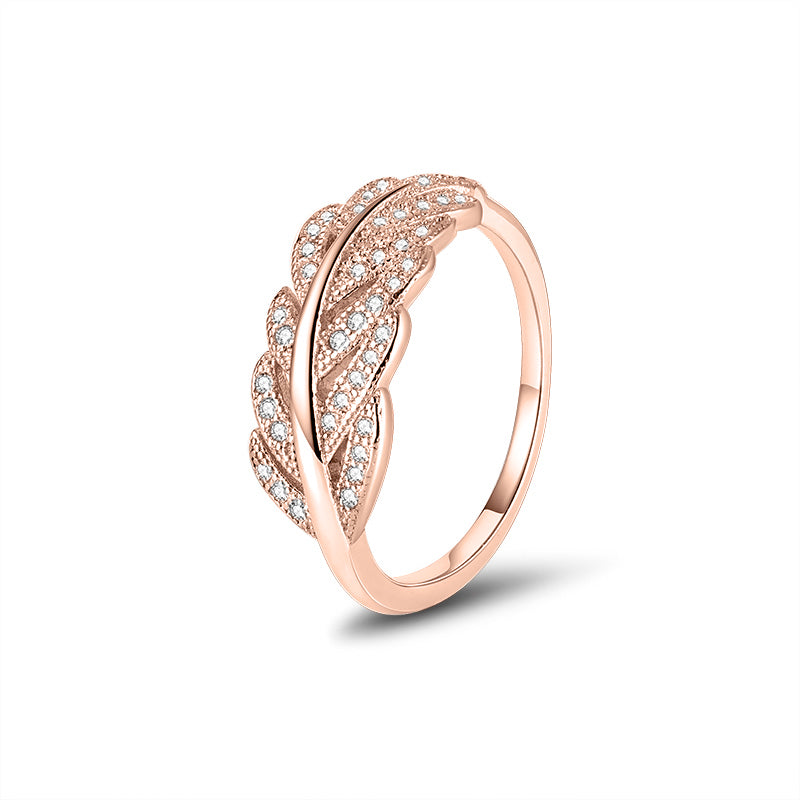 💍 טבעת אלגנטית בעיצוב עלים שזורים, משובצת אבני זירקוניה נוצצות שמוסיפות ברק ייחודי. שילוב מרהיב בין קלאסיות לחדשנות, מושלם לכל הופעה.