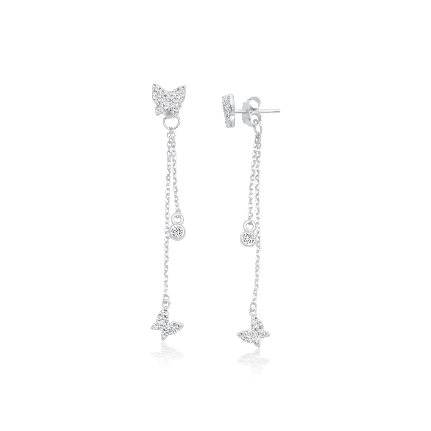 עגילי תלייה מעודנים עם עיטורי פרפרים 🦋 וזירקוניה נוצצת 💎. העיצוב הארוך והקליל מוסיף תנועה, זוהר ואלגנטיות, ויוצר מראה נשי מתוחכם שמתאים גם ליום יום וגם לאירועי ערב.