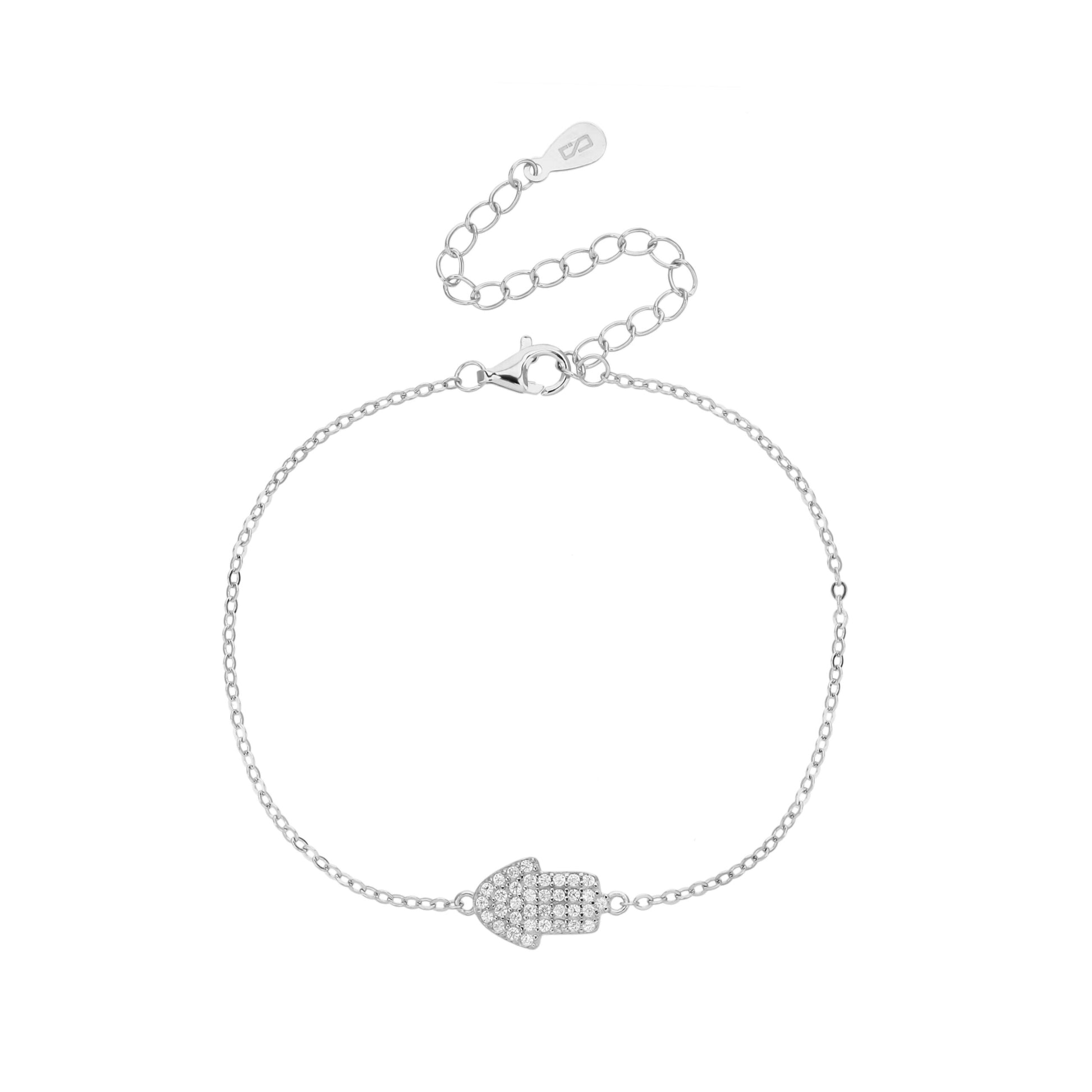 צמיד עדין ויוקרתי עם תליון חמסה משובץ זירקוניה נוצצת 💎. סמל קלאסי של הגנה ומזל טוב, משולב בעיצוב מודרני שמתאים לכל הופעה - מתנה עם משמעות עמוקה וסטייל נצחי.