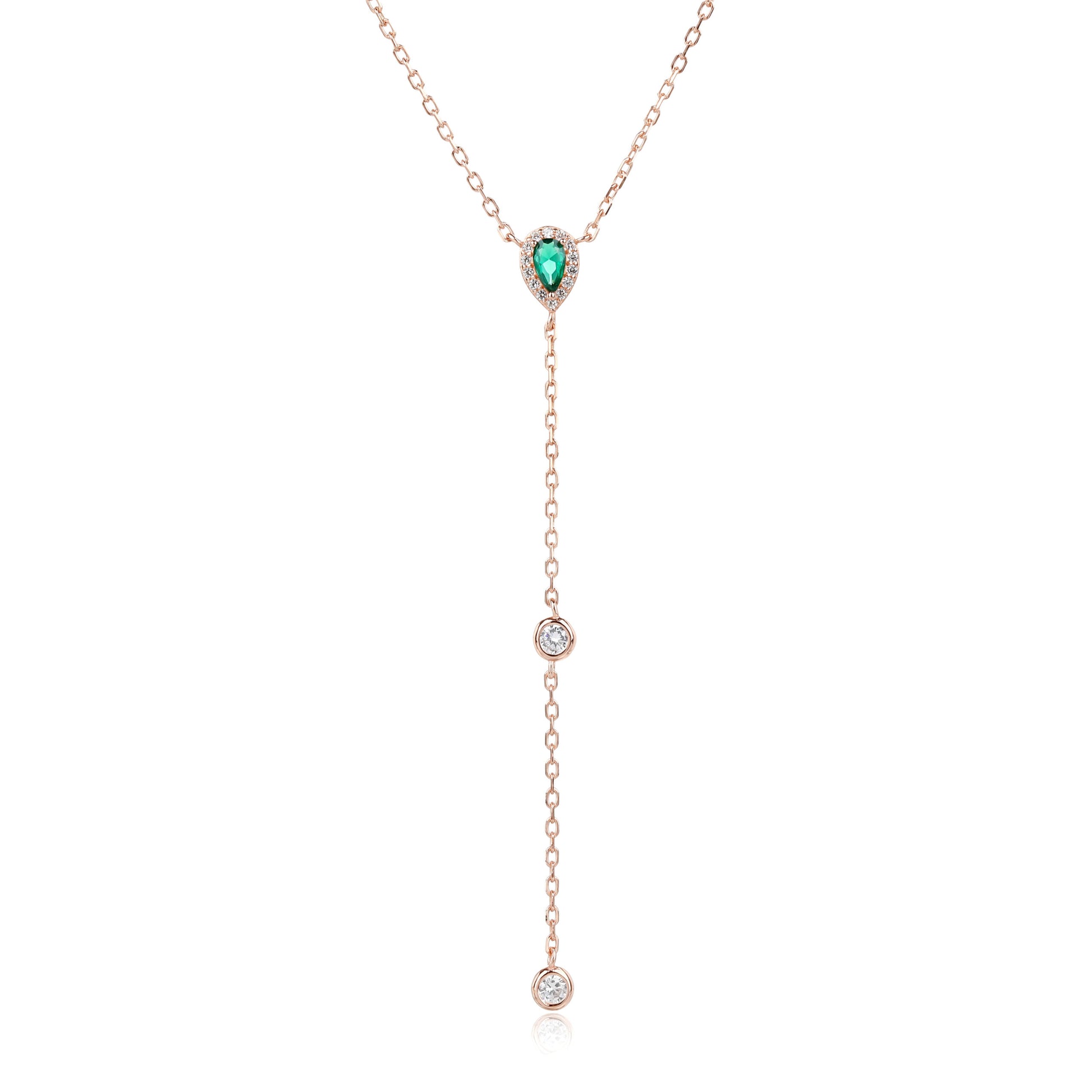 שרשרת בעיצוב אלגנטי עם תליון מרכזי משובץ אבן ירוקה בסגנון אמרלד, בשילוב שני אלמנטים נוצצים לאיזון מושלם. מוסיפה צבע, סטייל וזוהר לכל הופעה.